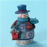 Intricately hand painted.Meticuously hand crafted.Enesco gift-manufacturing the most beloved home decor products for more than 50 years. The affordable pint size collection is a success with retailers and consumers alike delivering all the artistry and color of Jim shore in a smaller less expensive format. This snowman with cardinal is a colorful combination for the entire season.