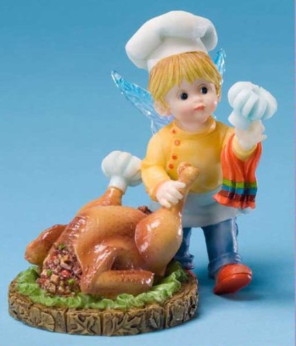 Meticuously hand crafted.Authentic clothtique.Enesco gift-manufacturing the most beloved home decor products for more than 50 years. Searching for a kitchen to live in as she pleases, it's through tiny keyholes that this little Fairie squeezes. She'll hide amongst your china, until you turn your back, but be careful of this Little Fairie, for mischief is her knack Your kitchen will be cozy, the true heart of your home, when visited by a Fairie, you will never be alone Introduced in January 2012, Lil' Turkey Chef Fairie is as charming as can be with a chef hat on, proper attire, she is adding the final details to this Thanksgiving masterpiece.
