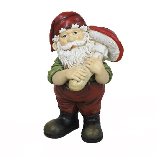 9-1/2-inch in height.Unique way to decorate.Beautifully detailed. The kurt adler 9-1/2-inch garden elf with mushroom decoration is a fun, quirky way to add to your home, garden, or holiday décor! This garden elf wears a red cap and green shirt, has a full white beard, and holds a red cap mushroom.