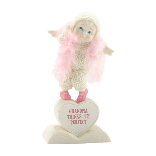 Snowbabies Classics from Department 56 Grandma Thinks I'm Perfect Figurine 1.18-Inch.Hand painted to the highest standards.Completely hand creafted by talented artisans.Department 56 has put the magic in christmas since 1976. This Snowbaby got all dressed up in her grandmother's fancy feathers. This piece reminds us that we are all, indeed, perfect in grandma's eyes.