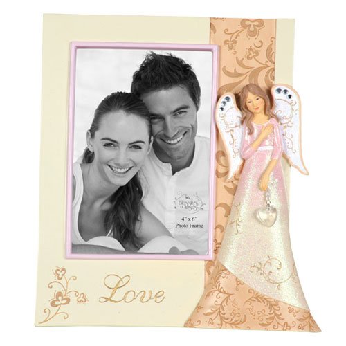 Gently dust the figurine, ornament or giftware with a soft clean cloth.Hand crafted in exquisite hand-painted polyresin.Measures 8.1 inches long by 1 inches wide by 7.5 inches high.For display in any room in the home this sweet collectible figurine is a great gift for the holidays.Arrives packaged in a beautifully recycled gift box.. Blessings of Angels Angel with Heart Frame. A photo of your loved one is tenderly displayed in a frame like no other. An angel holds her heart while clutching a crystal heart, speaking to both the purity and beauty of love. Holds a 4”x6” photo. Resin/acrylic. Measures 8.1 inches long by 1 inches wide by 7.