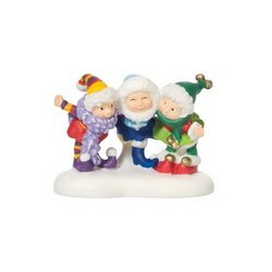 Three girl elves dressed up to go out accessory figurine.Christmas decoration not a toy remove surface dust with fine brush or feather duster use no liquid cleaners.Resin.North Pole Village figurine..