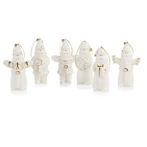 1 Set of 6 Mikasa holiday splendor santa ornaments.The Holiday Splendor collection is crafted of fine porcelain, decorated in 24K gold trim.Clay - porcelain.For decorative use.Wipe with cloth..