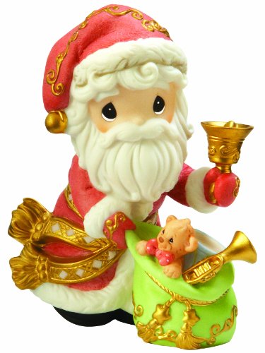 Each Piece Is Porcelain Bisque; Hand Sculpted and Hand Painted Infused with honest emotion it shares a message that speaks straight to the heart Indoor Use Only; Should Be Dusted Occasionally Precious Moments Porcelain Bisque Annual Santa Figurine, sharing a very merry message, "May Your Christmas Ring With Joy" is sure to please Packaged in a box made from recycled materials