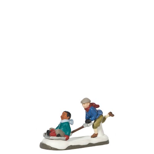 Christmas in the City figurine Resin Christmas decoration not a toy remove surface dust with fine brush or feather duster use no liquid cleaners Boy in blue jacket giving his friend a ride in a snow shovel porcelain accessory figurine