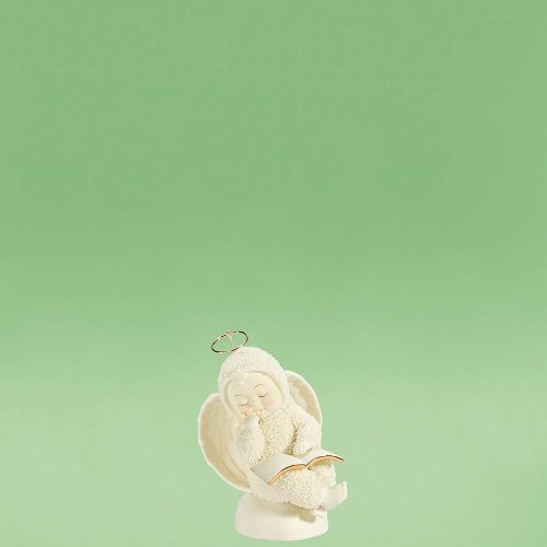 Christmas decoration not a toy remove surface dust with fine brush or feather duster use no liquid cleaners Gold metal halo gold accents on book Porcelain Bisque Snowbabies figurine