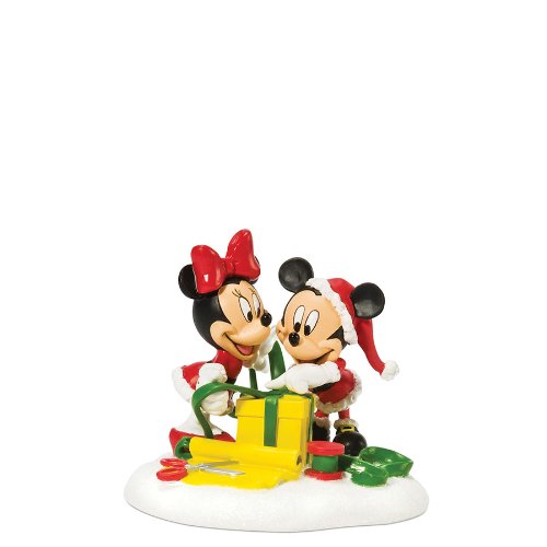 Department 56 Disney Village Accessory Figurine, Mickey and Minnie Wrapping Gifts Feature