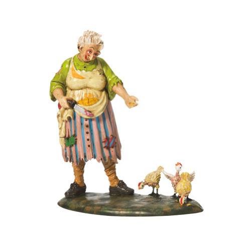 Creepy old lady feeding 3 deranged chickens accessory figurine..